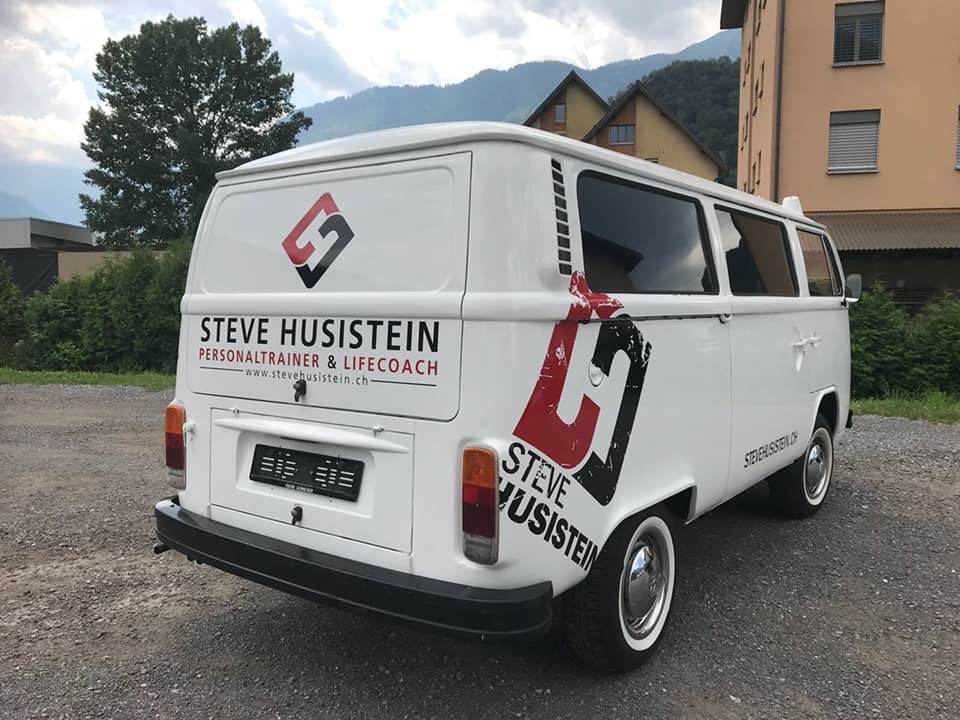 Ich möchte ein bisschen anderen Wind in Steve’s Blog bringen und habe mir gedacht, es wird an der Zeit, dass ich mich euch endlich mal vorstelle. Als unscheinbares und ausrangiertes Armeefahrzeug kam ich vor über 10 Jahren zu Steve. Damals war ich noch zweckmässig als Surferbüslein unterwegs. Steve hat mich dann über all die Jahre ausgerüstet und verschönert. Die Farbe vom Surferbüslein habe ich abgelegt und erstrahlte ab sofort in einem glänzenden Weiss. Über all die Jahre wechselte ich das Äussere nur mit den verschiedenen Beschriftungen, die mir Steve gab. Auch er machte eine Transformation durch. von „fitNessen“ in grün über „fitNessen“ in Magenta bis zum aktuellen Auftritt von Steve mit seinem eigenen Namen als Brand.